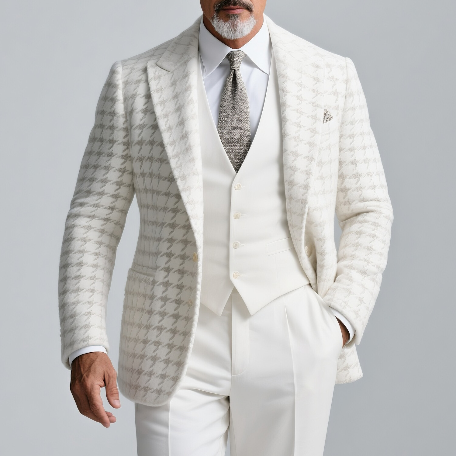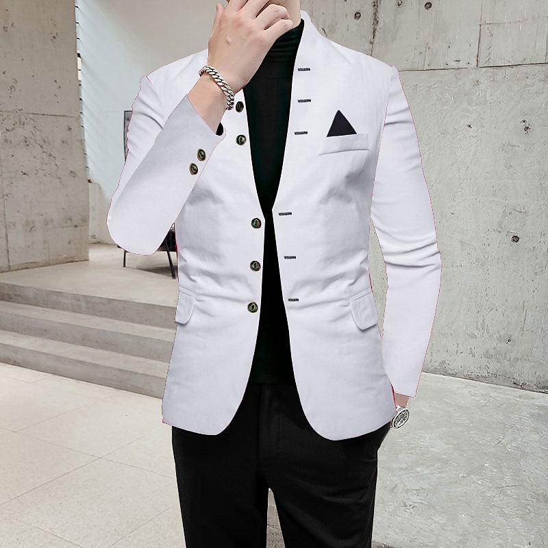 Men's Party Stand Collar Button Design Chest Pocket Blazer