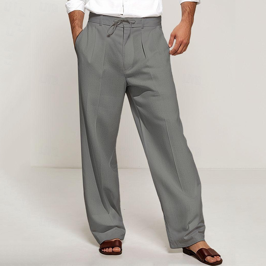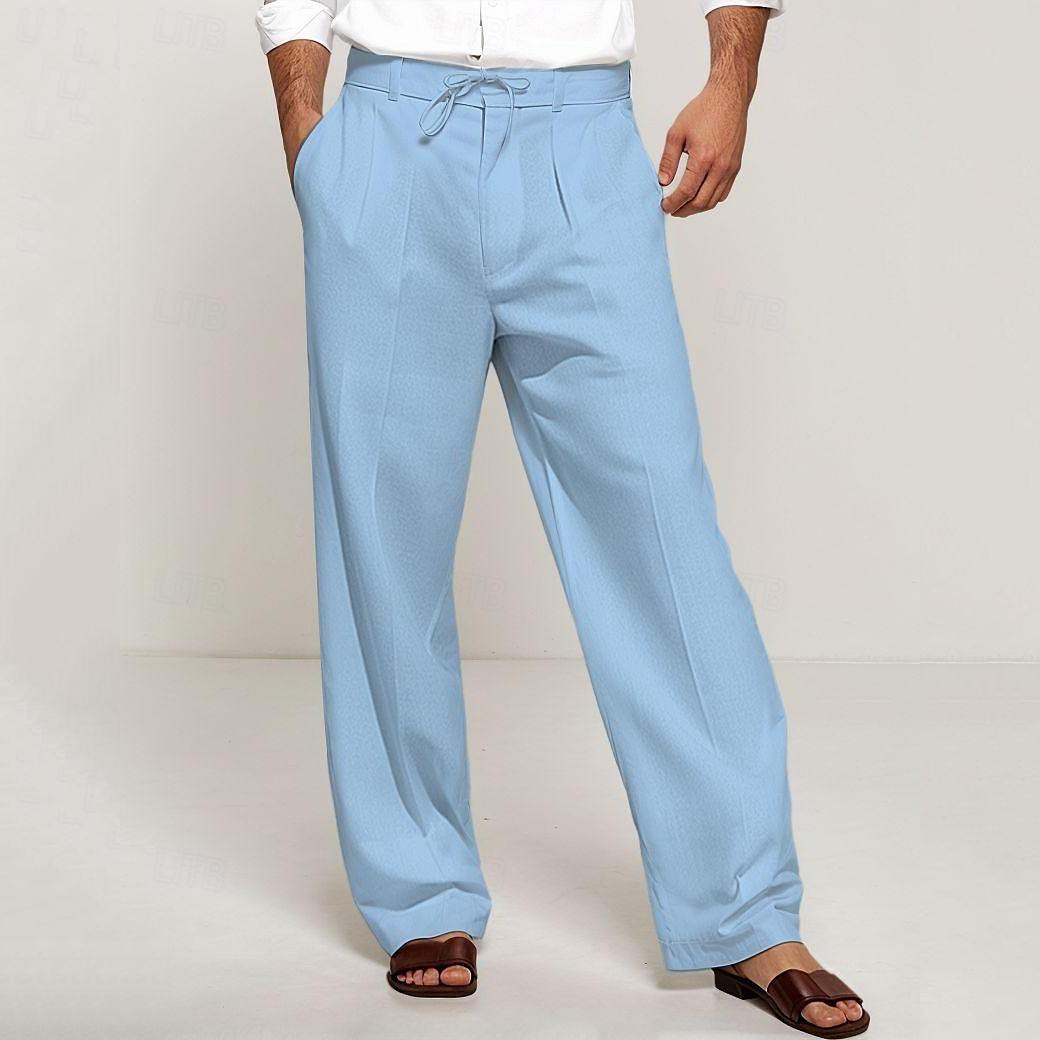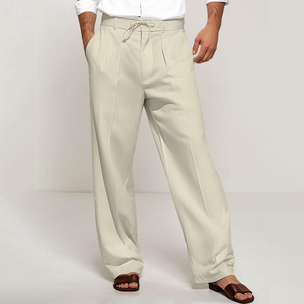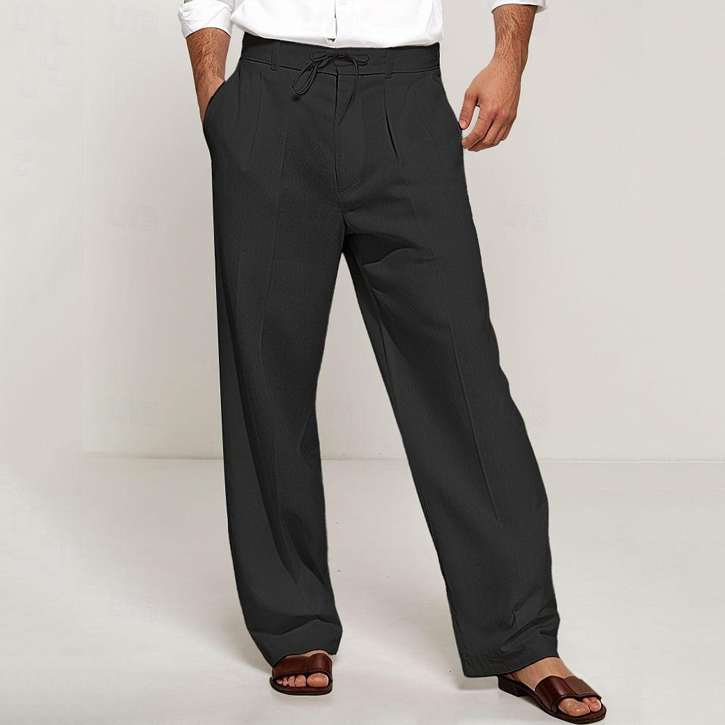 Men's Linen Solid Pocket Straight Pants
