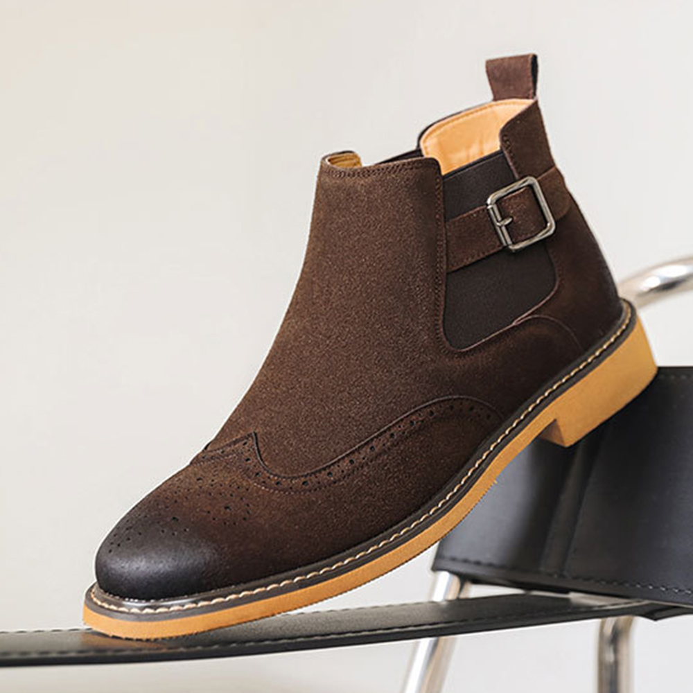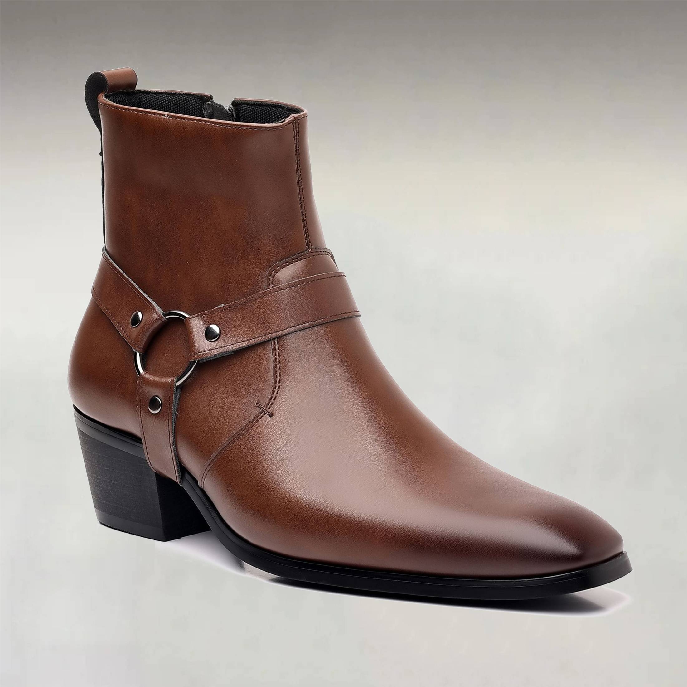 Men's Casual Studded Side Zipper Chunky Heel PU Leather Boots