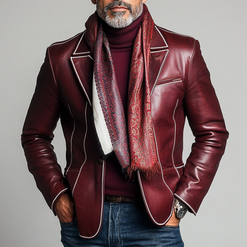 Men's PU Leather Lapel Single Breasted Contrast Binding Blazer