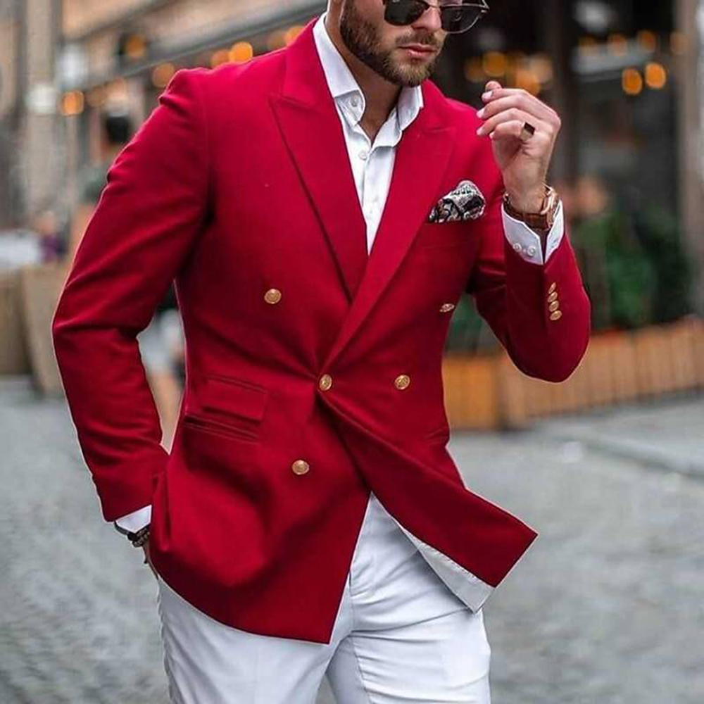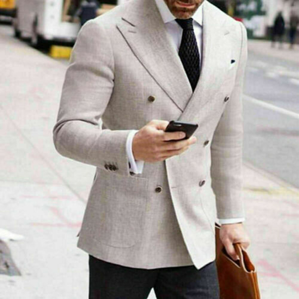 Men's Business Casual Double Breasted Metal Buttons Blazer
